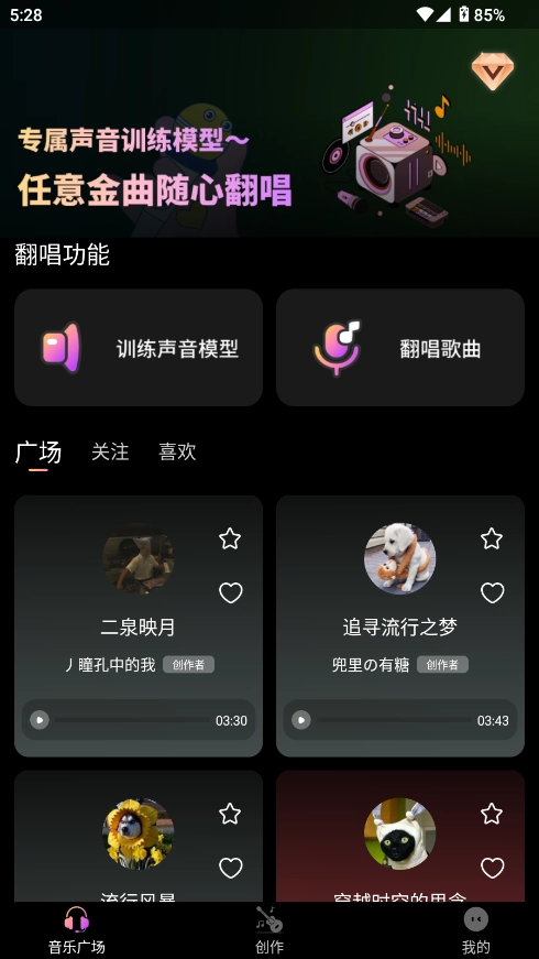 发行个人专属原创歌曲:在音乐广场聆听他人新作,发行的最佳创作。