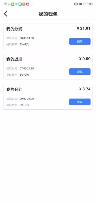 首页展示了当日分润的详细金额情况,同时也包含各类扩展商户信息等内容。