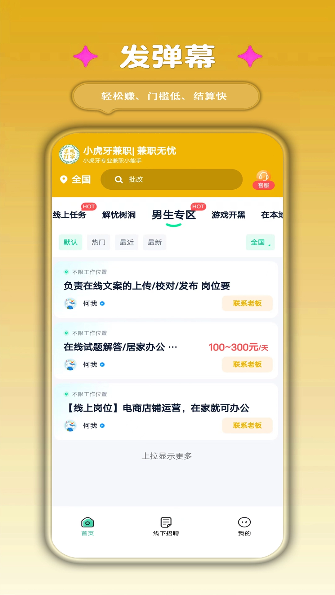 小虎牙兼职软件为用户提供多样化的兼职选择,帮助用户实现灵活就业。软件通过精确的分类和智能推荐,让用户能够快速找到适合自己的兼职项目。无论是想要在家办公的求职者,还是希望利用碎片时间增加收入的学生,软件都能提供丰富的选择。用户只需注册账户,便可浏览各类兼职信息,轻松找到心仪的工作机会。