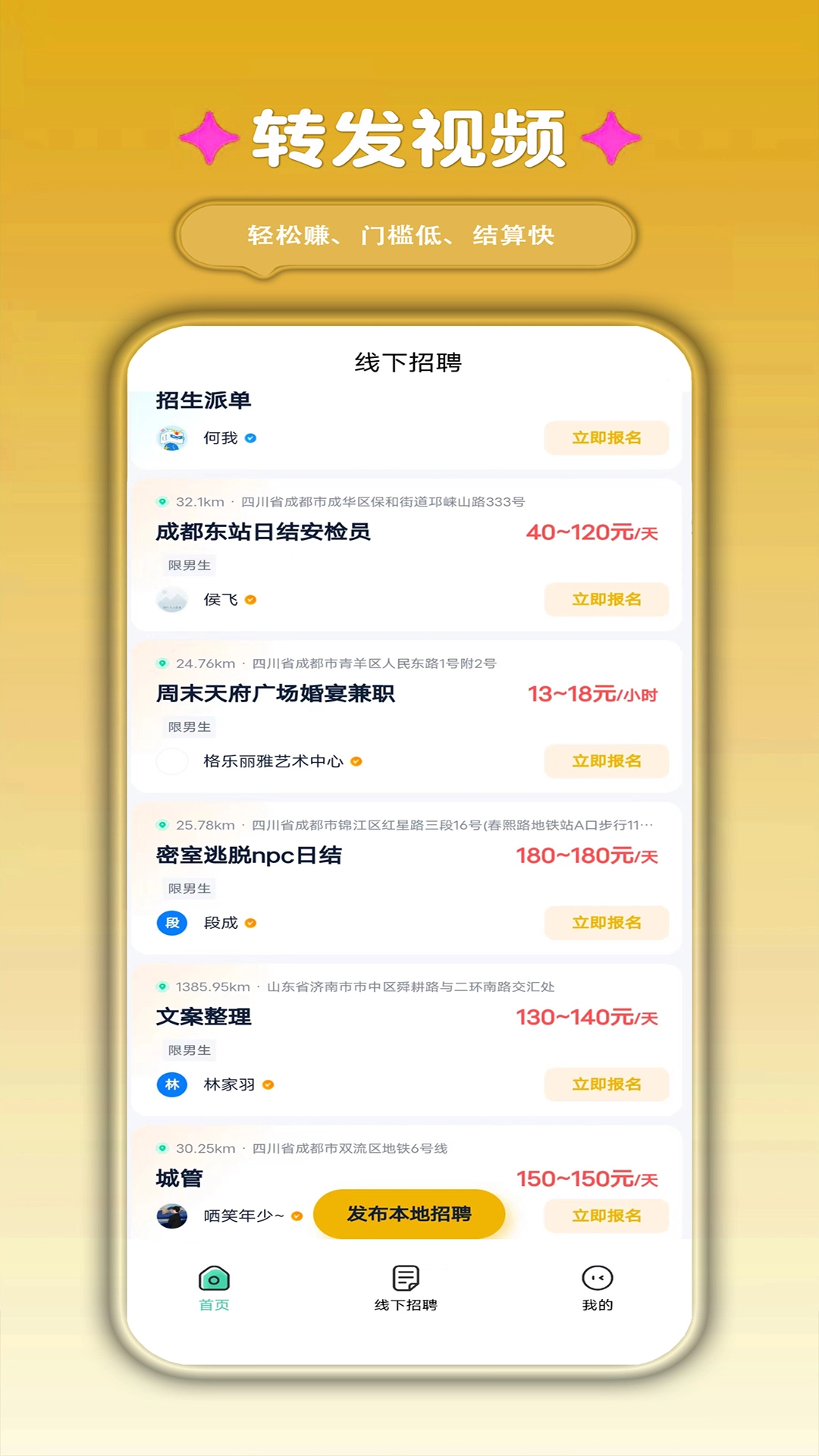 软件为用户提供了便捷的兼职申请流程,用户只需简单几步即可申请感兴趣的职位。平台内的兼职项目种类繁多,涵盖了客服、打字、录音、视频发布等多个领域,极大丰富了用户的选择空间。通过智能推荐系统,软件能够根据用户的历史行为和偏好,推送更符合其需求的兼职信息。通过平台与其他兼职者进行交流,分享经验和技巧,增强了社区的互动性。