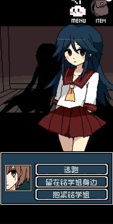 16. 进入铭的房间后,拉开衣柜门,竟发现里面有三具尸体。就在这时,学姐也发现了这一幕。接下来做出不同的选择,会触发不一样的结局。具体结局这里就不透露了,留待大家亲自去探索吧。