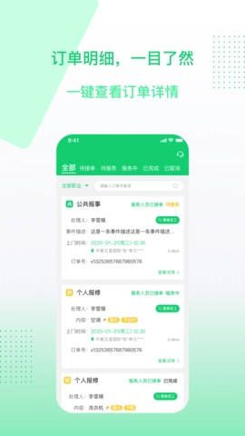 聚达之家服务端也为物业人员提供了接单及上门开展维护检修工作的机会。当业主提交工单后,对应小区的物业人员能通过该软件及时接收工单通知。物业人员可查看工单的具体详情,涵盖工单类型、工单内容、工单地点等信息,并依据自身时间安排与能力条件来选择接单。一旦接单成功,物业人员即可按照工单要求上门执行维护检修任务,助力为小区业主营造良好的居住环境。