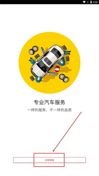 1、在易快修专业汽车服务页面,点击【立即体验】功能按钮,即可进入服务主界面。