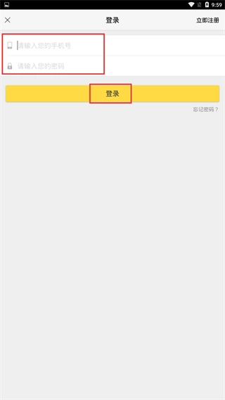 4、进入登录页面后,输入手机号和密码,接着点击【登录】按钮,即可完成账号登录流程。