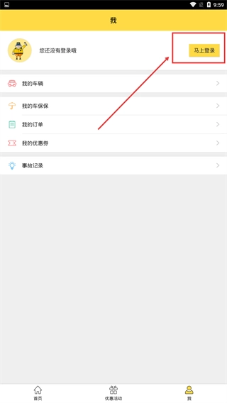 3、进入个人页后,点击【马上登录】按钮,即可跳转至登录页面。