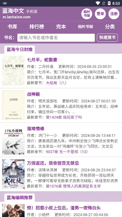 蓝海搜书是一款专注于免费小说阅读的App,界面简洁清新,功能实用强大,深受广大书迷喜爱。平台汇聚了海量正版小说资源,涵盖玄幻、都市、言情、悬疑、历史等多种热门题材,更新速度快,内容丰富全面,满足不同读者的个性化阅读需求。