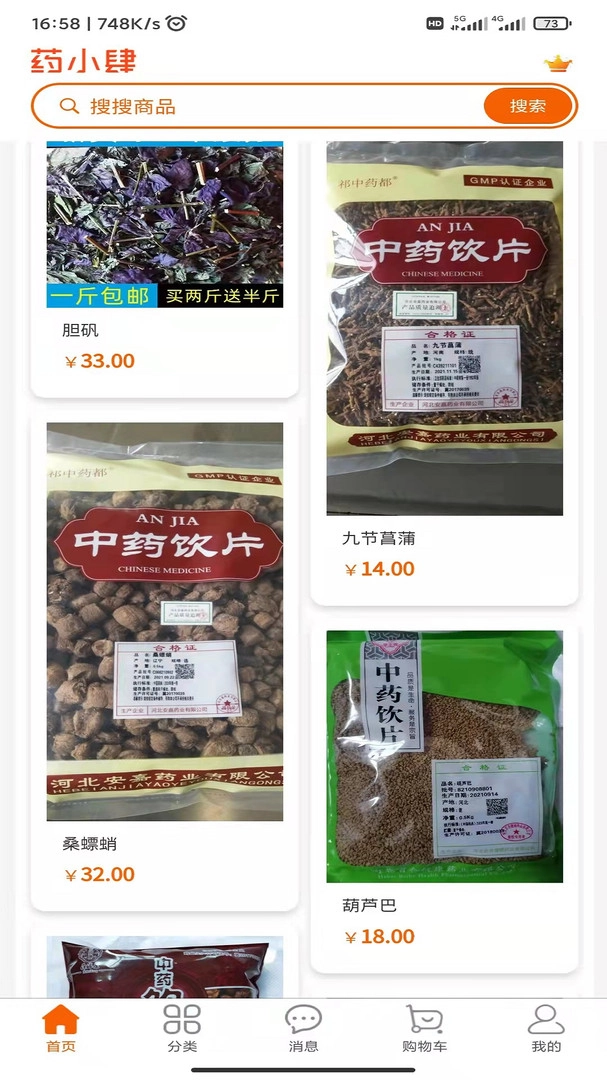 药小肆是一款由广州聚药网络科技有限公司开发的医药线上商城,用户可以通过本软件线上购买需要的药品,软件内中医草药西医用药全部都有,药品非常全面,药品相关信息和使用方法都非常信息,使用方便送货上门。让您可以轻松采购,有需要的用户欢迎使用!