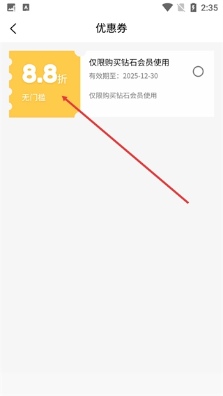 4、进入优惠券页面后,挑选带有【8.8折-无门槛】标识的优惠券,就能享受优惠购买商品的福利。