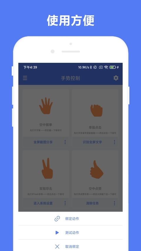 提供有测试工作的功能,让用户可以提前测试一下手势动作的使用效果。