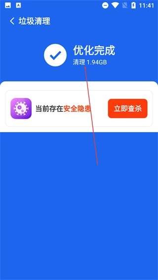 4、清理结束后会出现【优化完成】的提示,与此同时能够依据提示对检测出来的安全隐患进行处理。