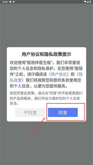 1、在用户协议和隐私政策提示页,点击【同意-功能按钮】,进入登录界面。