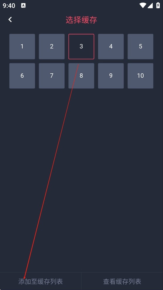 3、选择想要缓存的集数,然后点击添加至缓存列表。