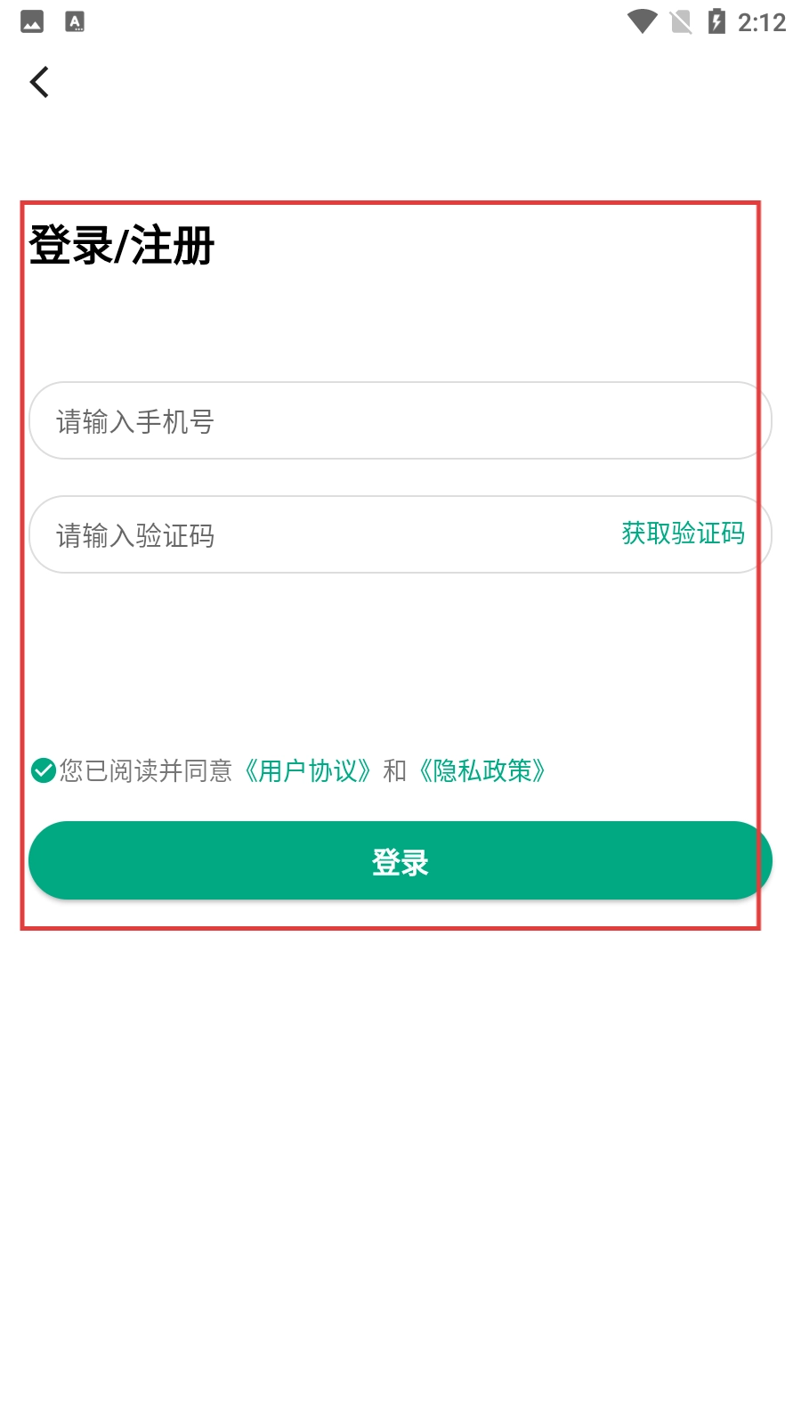 在登录或注册的界面中,先输入手机号码并获取验证码,随后点击【登录】按钮即可完成登录操作。