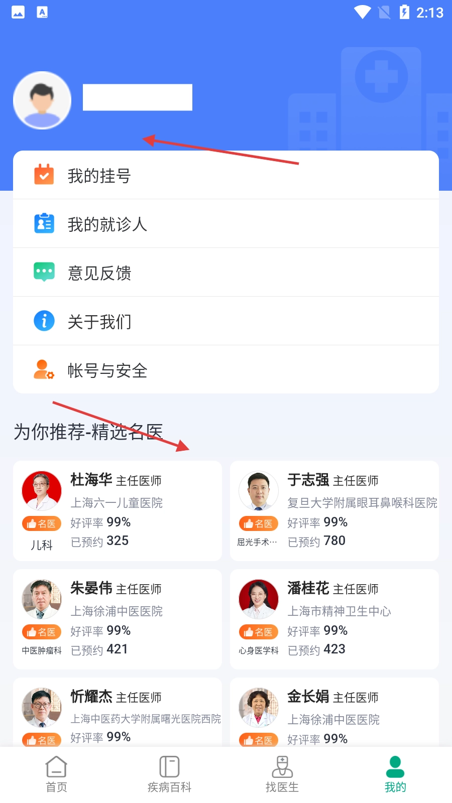登录成功后,您可以在个人中心页面查看自己的挂号记录、就诊人信息,还能浏览系统推荐的优质名医,并进行挂号等医疗相关操作。