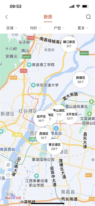 地图找房能够查看你周围区域的房区。