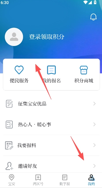 5、我的,用户界面,提供各项便民信息的登录,遇到使用问题时可及时在此反馈解决。