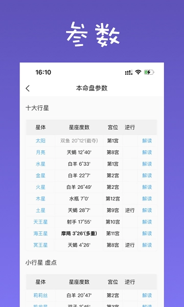 2.拥有超过300万字的星盘解释数据库,针对星盘个性化解读;