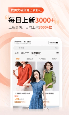 衣衫汇男女装货源是一款交易平台软件,为用户提供从选款采购、发货物流到售后退换的一站式服务。平台代发订单,将按厂家服务承诺包退包换。衣衫汇男女装货源汇聚了浙江濮院男女装批发市场超2900+优质厂家,货源总量近62万,让全国电商卖家、实体分销商、渠道商足不出户即可找到好厂家、好货源,降低进货成本与开店压力。