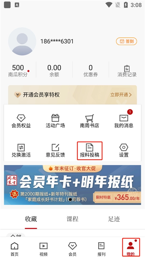 1、进入软件,选择我的栏目,点击报料投稿;