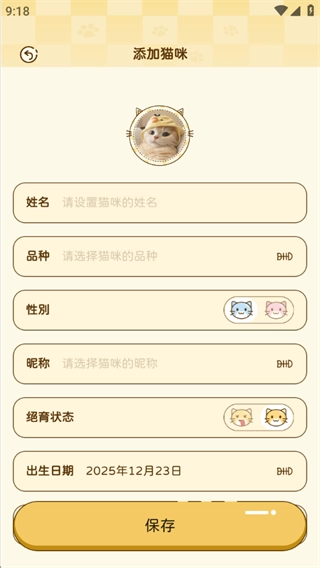 2、添加并保存您的爱宠信息,方便系统记录宠物的完整成长过程。