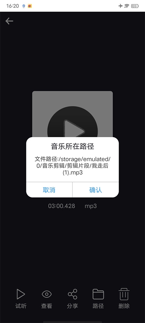 4、会弹出该音乐所在的路径,根据这个路径可找到刚刚导出的音频。
