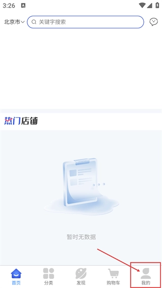1、点击底部【我的】进入个人页面,该页【热门店铺】板块当前显示暂时无数据,可进行后续操作。