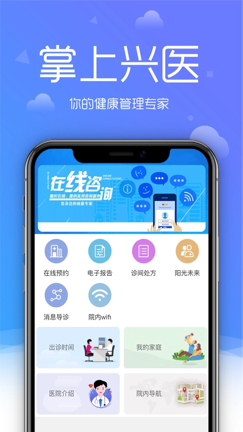掌上兴医全新升级后更名为大兴区医院,该软件具备预约挂号、电子报告查询、诊间处方查看、院内导航、消息导诊、住院押金缴纳等多种功能,能够为用户就医提供更便捷的帮助。