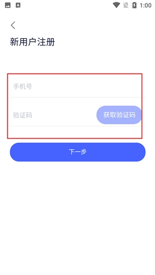在新用户注册页面,首先需要填写【手机号】,接着点击【获取验证码】按钮,等收到验证码后将其输入到对应的输入框中,这样就可以准备进行后续操作了。