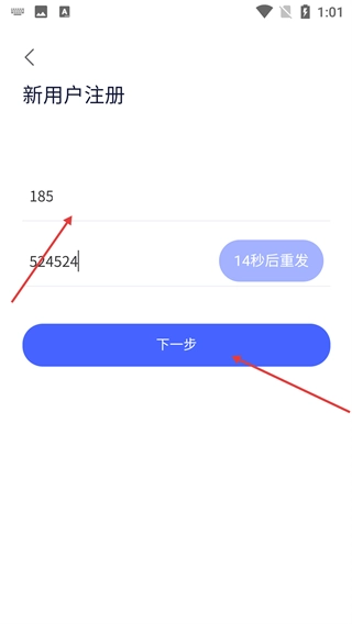 完成手机号和验证码的填写操作后,点击【下一步】按钮,就能继续推进新用户注册的后续流程。