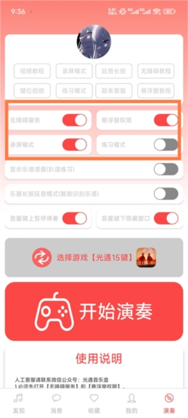点击【开始演奏】按钮,一旦屏幕上出现悬浮窗,就说明该功能已经成功开启了。