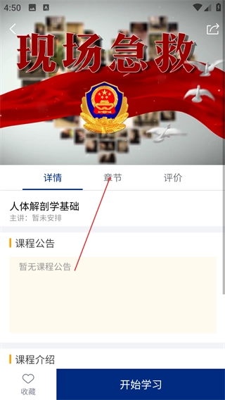 3、打开课程详情页,切换【详情】-【章节】-【评价】标签,查看【课程公告】-【课程介绍】,。