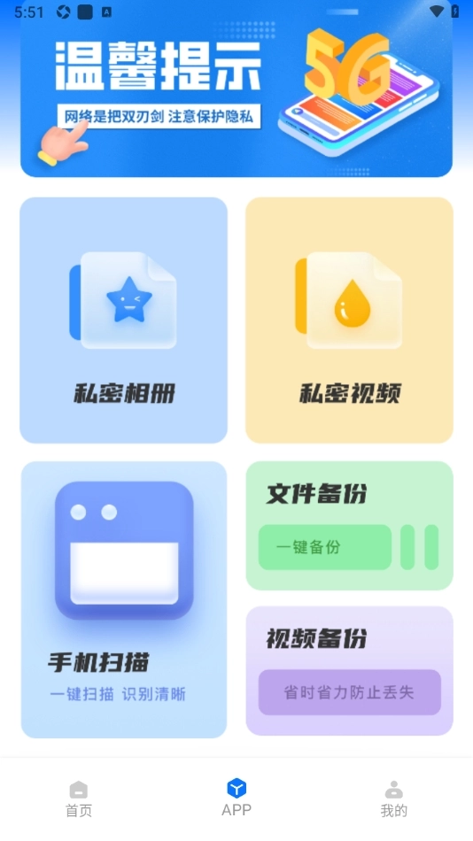 除了能把软件隐藏起来,还有专门的私密相册和视频功能,能让这些内容不被他人看见;另外它还具备文件备份功能,提前备份好文件后,后续恢复起来也挺简单的!