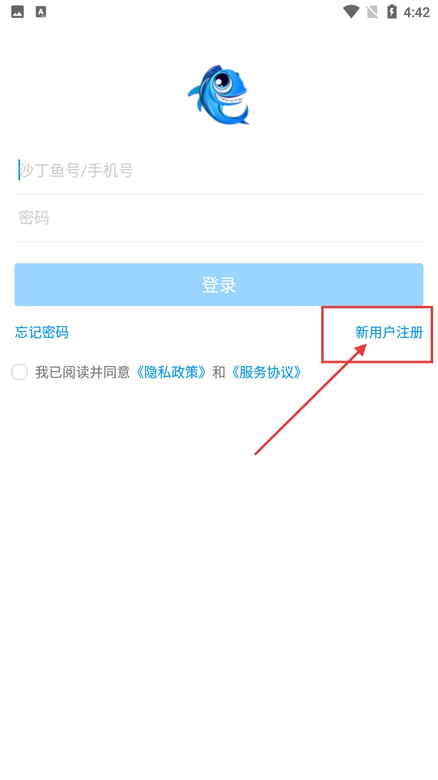 在登录注册界面,点击【新用户注册】按钮,即可进入注册流程。