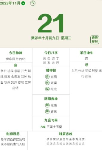 2. 内容充实多元:该软件除了提供基础的宜忌信息外,还融入了节气、节日等丰富的传统文化元素,能够充分满足用户的多样化需求。