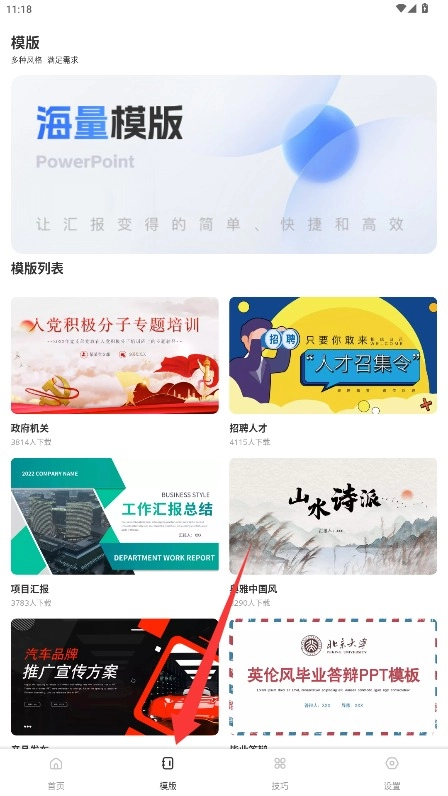 进入模板中心,你可以浏览各式各样风格的PPT设计样式,挑选出适合自己的模板并查看其详细信息。