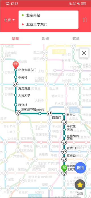 可以把常用的北京地铁路线收藏起来,这可是上班族每日通勤的实用好物,收藏后下次即使离线也能随时查看这些路线啦。