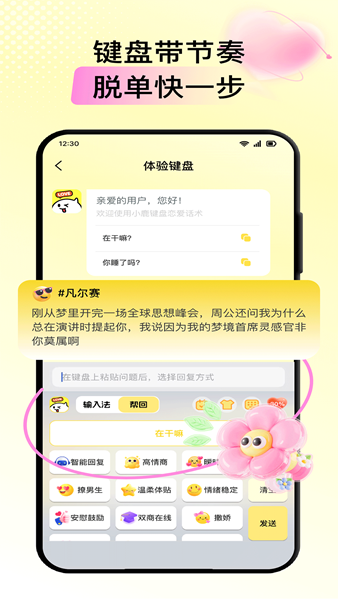 小鹿键盘app安卓最新版以ai的方式打造定制方向的键盘恢复内容,帮助热恋用户打造更丰富的聊天话术,无论是任何场景都可通过软件中的AI帮助带来更高情商的恢复,真正让你的表达更具温度。