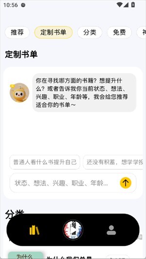 2、在推荐板块中同时存在定制书单的功能,您可以自行输入需求,软件会为你推荐。