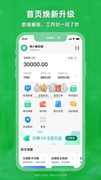 锅圈云铺最新版本是一款专为商家打造的店铺管理工具,商家们能通过它便捷查看店铺的各项详细信息,还可以分析店铺的经营状况,实时掌握货源与库存动态,为商家提供了高效便捷的店铺管理平台,感兴趣的商家不妨来KK平台体验一番~