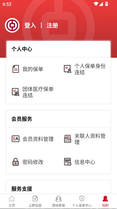 4、个人保单中心,购买保险查询保单业务,均在此办理。