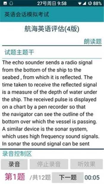 英语听力与会话课程里的“听力模拟考试”,能依据评分标准自动完成评分。“会话模拟考试”则可把考试录音存到手机里,方便后续请老师进行评判和打分。在“英语会话”板块,还包含了所有朗读内容的配音、口述题目以及问答题目参考回答的音频。这款软件功能既强大又实用,能给考生备考带来很大便利。