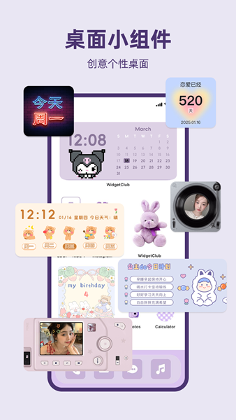 1、X面板,倒计时,日历等组件等你使用,提供各种具有高外观的实用小部件。
