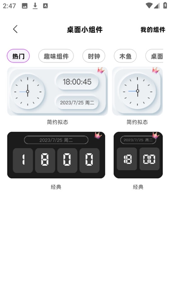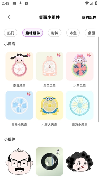 4、以趣味组件板块为例,选择其中的任意组件都可以将该组件添加到桌面。
