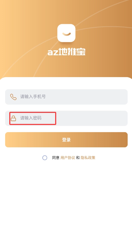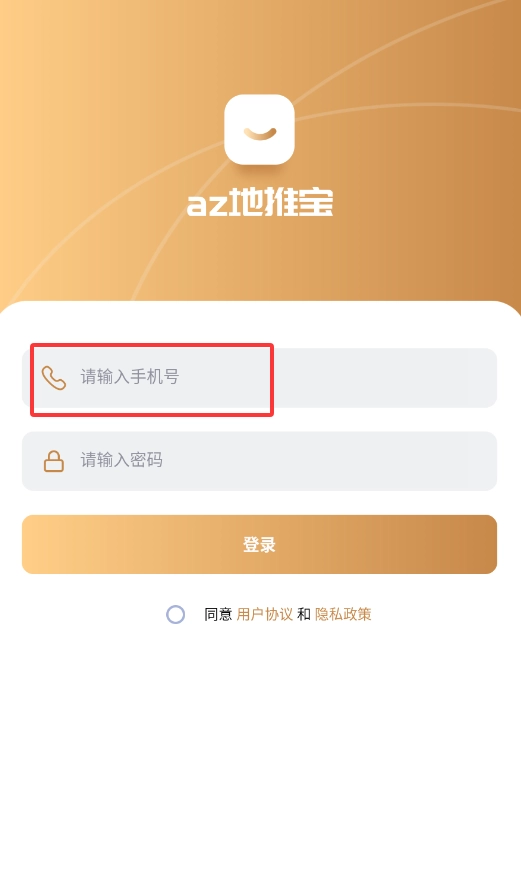 启动az地推宝后,在登录页面输入注册时绑定的手机号码。