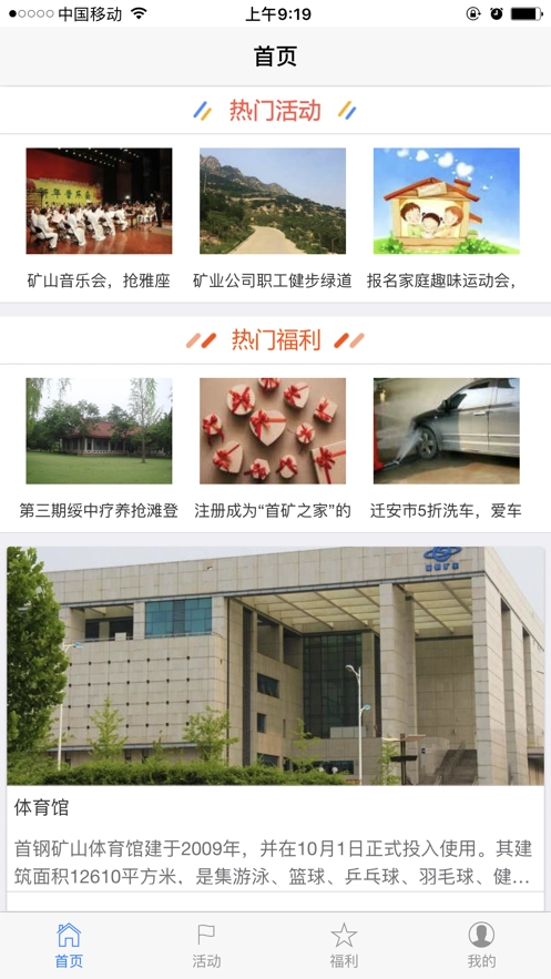 首矿之家手机客户端,由首钢矿业公司工会主导开发,旨在为广大职工提供文体活动参与、福利服务申领以及商家优惠对接等功能。职工可通过该客户端便捷完成活动预约、福利项目申请等操作,同时平台还整合了多种便民服务内容。