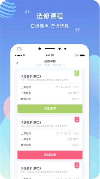 通过它能够了解孩子们的全面成长发展情况,帮助老师、孩子和家长建立起更熟悉的沟通环境。平台里的校园功能十分完备,能快速实现成绩查询、课程选修、教学评价、查看课程表等操作;同时,线上还可以帮孩子请假、了解每日作业管理、获取最新资讯通知,也能和更多家长互动、查看班级相册等。