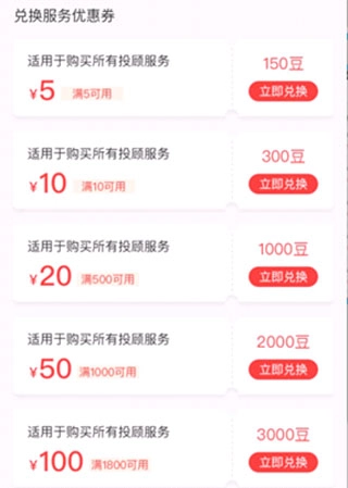 兑换服务优惠券。其中涵盖5元到100元不同面额的投顾服务优惠券,在购买内参、组合等付费内容时能够直接抵扣现金。