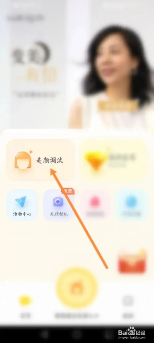 打开手机的微美颜软件,点击下面的美颜调试选项。