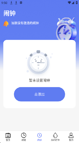 4、根据排班,您可以在闹钟界面设置每天的闹钟避免班次遗漏。