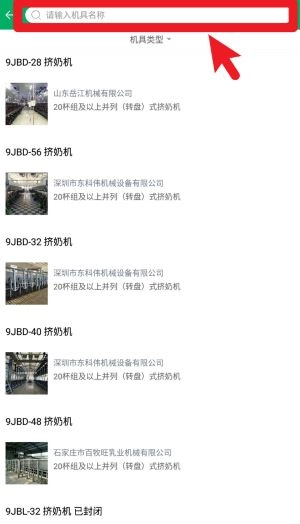 进入机具查询页面后,用户可以通过输入名称或者筛选机具类型,快速查看符合条件的补贴机具以及对应的厂商信息。